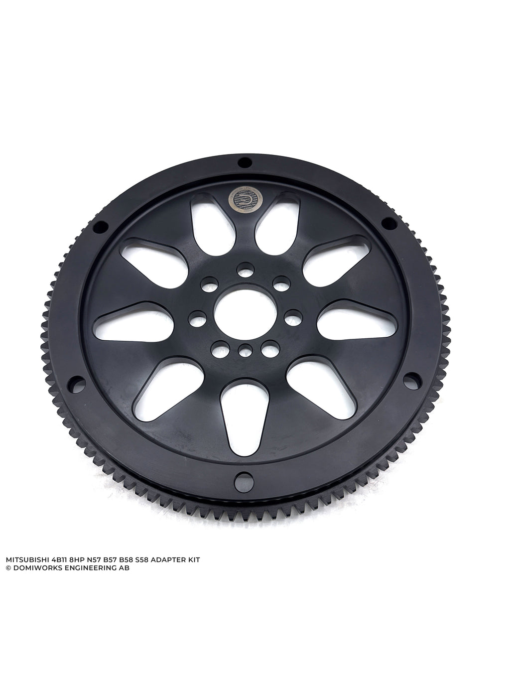 Includes full billet flywheel with integrated starter ring gear made out of high strength steel. TC Adapter made out of high grade aluminum and anodizied black.