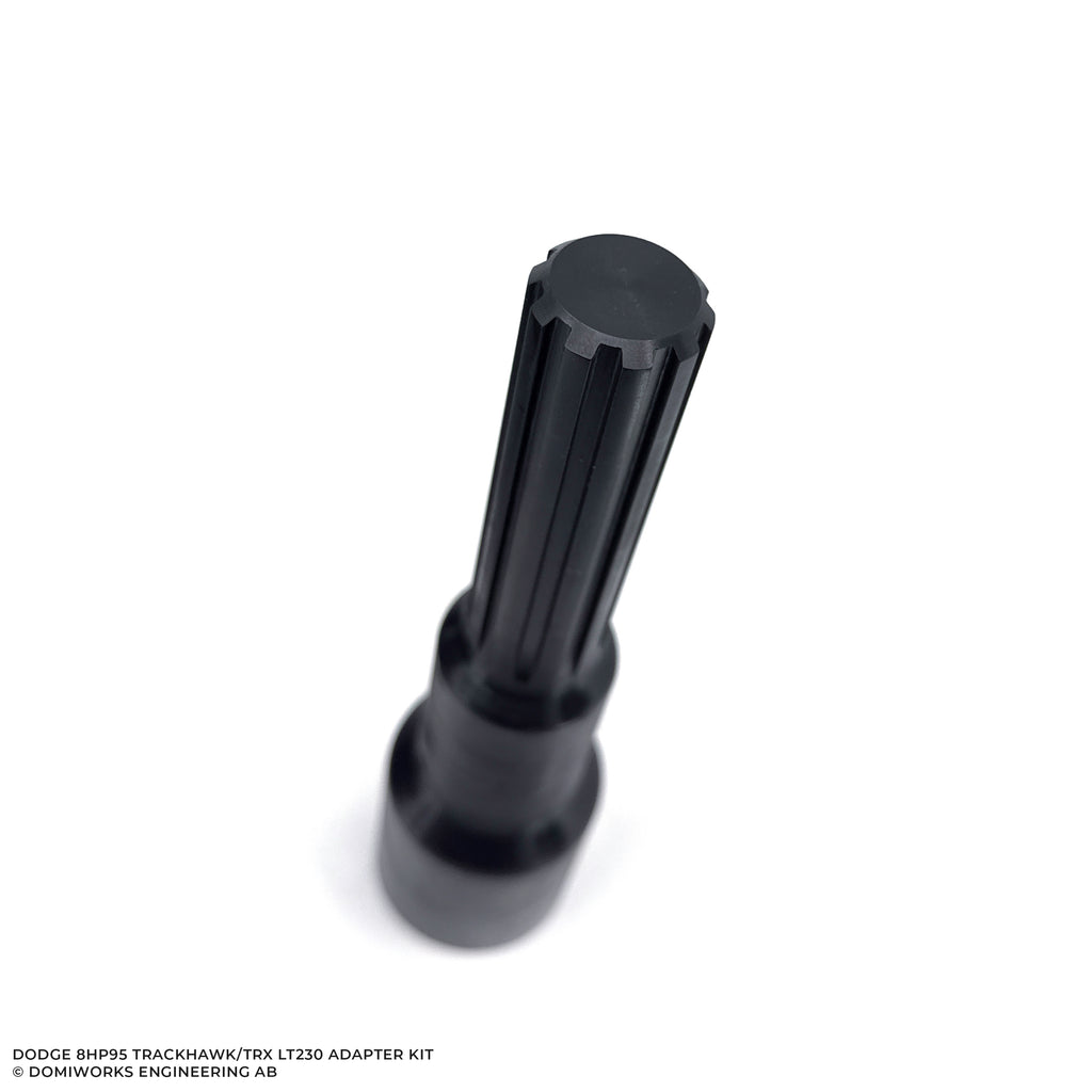 Kit includes a new intermediate axle to connect the 8HP AWD transmission output axle with the LT230 spline. Made out of Orvar Supreme and heat treated for for increased torque capability and durability.