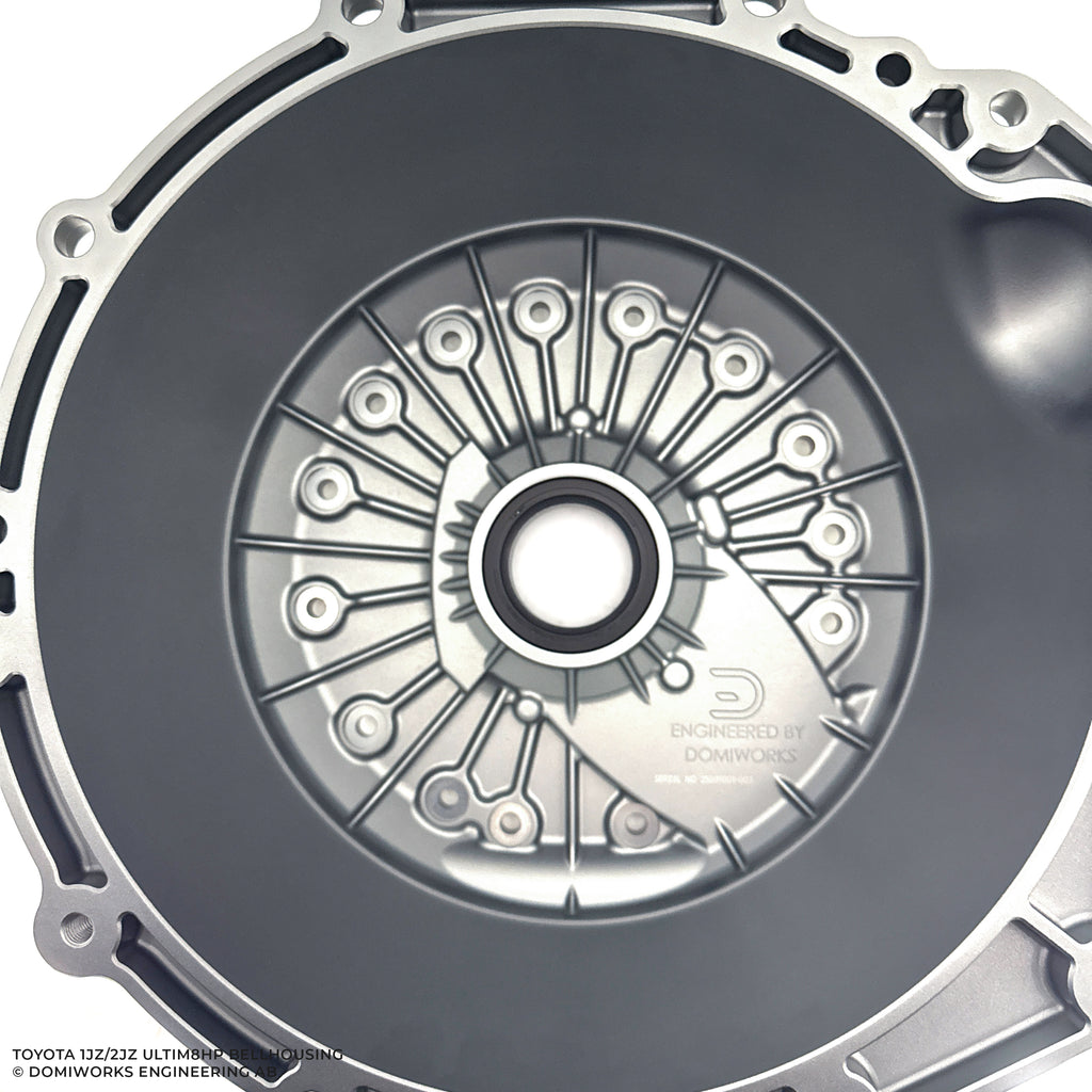 First out in the Ultim8HP series is the Toyota 1JZ/2JZ adaption. Our full Ultim8HP kit will feature the bellhousing itself, new billet flexplate with integrated ring gear, new bolts, o-rings and seals. Everything required to make this swap. There is also a complete Supra MKIV kit availalbe featuring the entire crossmember assembly.