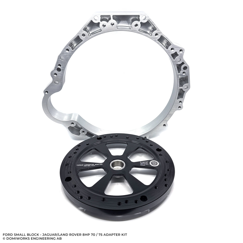 Adapter kit to fit a 8HP Jaguar/Land Rover gearbox to a Ford Small Block 289, 302, 351C and 351W engine.